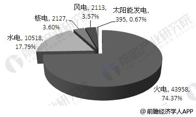 就發(fā)電結(jié)構(gòu)來看,2016年,水電發(fā)電量10518億千瓦時(shí),占全國發(fā)電量的17.8%;火電發(fā)電量43958億千瓦時(shí),占全國發(fā)電量的74.37%;核電、風(fēng)電和太陽能發(fā)電量分別為2127億千瓦時(shí)、2113億千瓦時(shí)和395億千瓦時(shí),比重分別為3.60%、3.57%和0.67%。