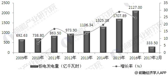 2009-2017年中國核電發(fā)電量增長情況