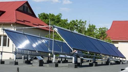 幼兒園/照片歐盟屋頂上的真空太陽能集熱器