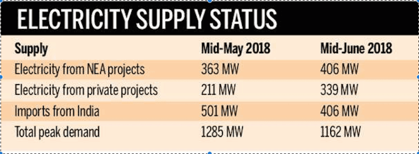 NEA擁有的水力發電項目的發電量從5月中旬的363兆瓦增至406兆瓦。同樣,私人開發商將產量提高了128兆瓦,達到339兆瓦。5月中旬,私人開發商擁有的發電廠僅生產211兆瓦的電力。