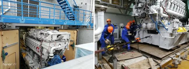 柴油機(jī)抵達(dá)現(xiàn)場后,工程公司與業(yè)主、施工單位、廠家嚴(yán)格執(zhí)行作業(yè)方案和施工計(jì)劃,施工單位各作業(yè)隊(duì)最大可能平行施工,在2018年6月19日具備啟動條件,提前進(jìn)度計(jì)劃要求6天,在返廠維修最短記錄基礎(chǔ)上,又創(chuàng)造了一個回場后復(fù)裝的最短記錄!