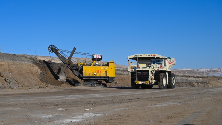 在扎哈淖爾露天煤礦生產(chǎn)現(xiàn)場,15臺120噸級純電動輪礦用車正在有序作業(yè)。