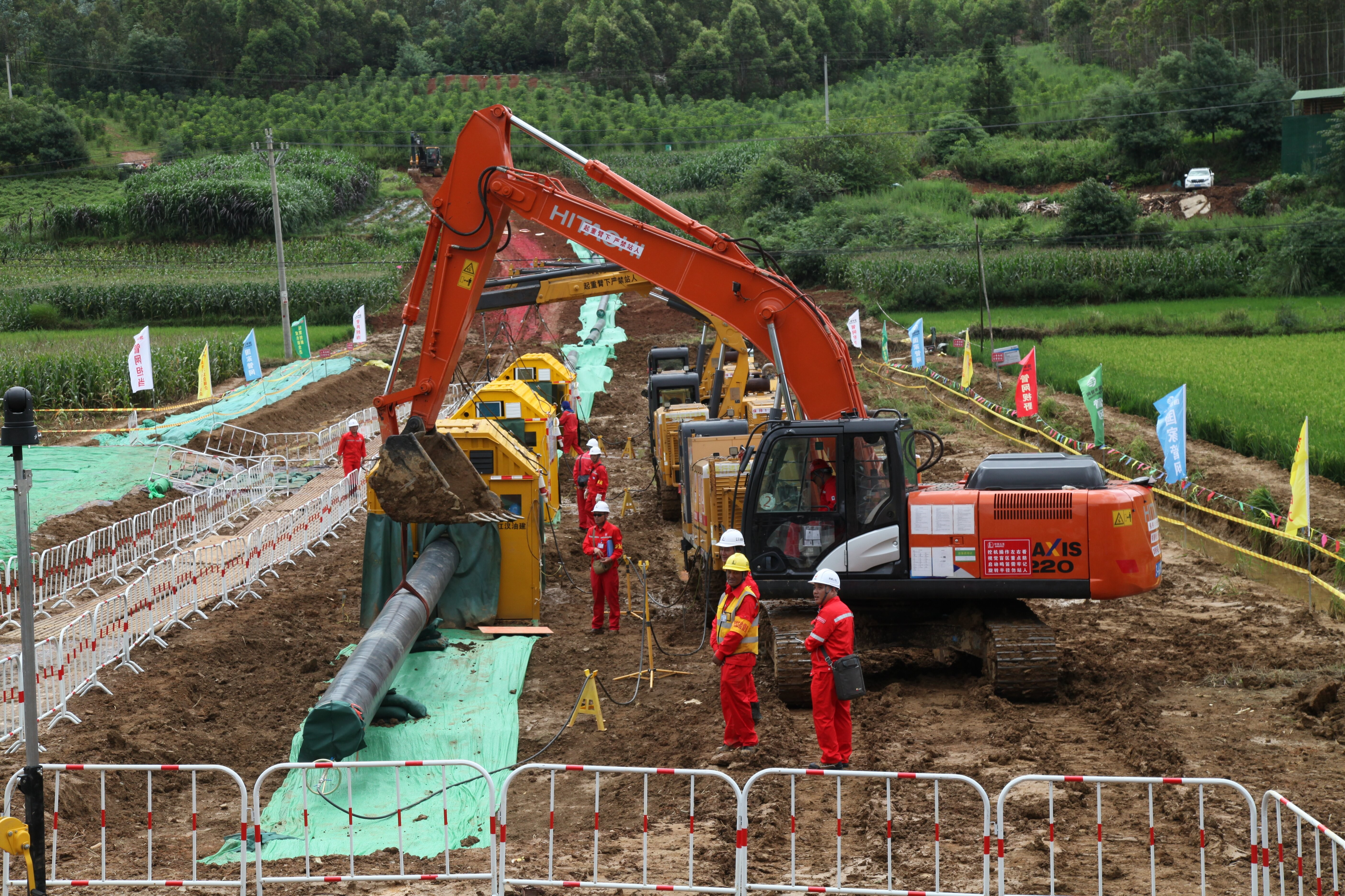 “轟隆隆.....”寬闊的作業帶上,幾臺挖掘機正在施工,巨大的溝槽逐漸成型,兩側整齊地堆放著防護用的材料和即將鋪設的管道。自2024年8月開工建設以來,這項工程綜合進度已超50%,焊接里程突破263公里,預計2026年全面建成具備投產條件。屆時,將全面實現“桂氣入滇”。