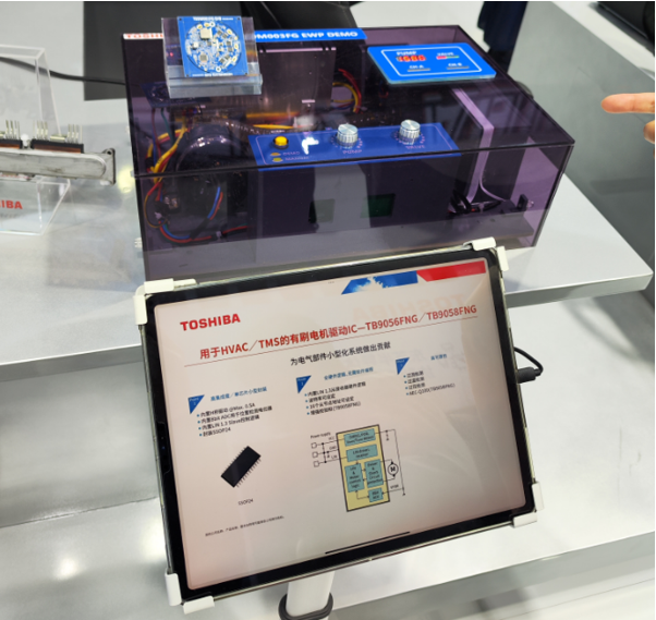 另一方面,隨著汽車發(fā)動(dòng)機(jī)熱管理和照明系統(tǒng)智能化需求的提升,電子水泵和智能LED大燈的應(yīng)用日益普及。東芝針對(duì)這些應(yīng)用提供了高效的解決方案。例如,東芝展示了采用其SmartMCD™及低壓MOS的電子水泵整體解決方案。