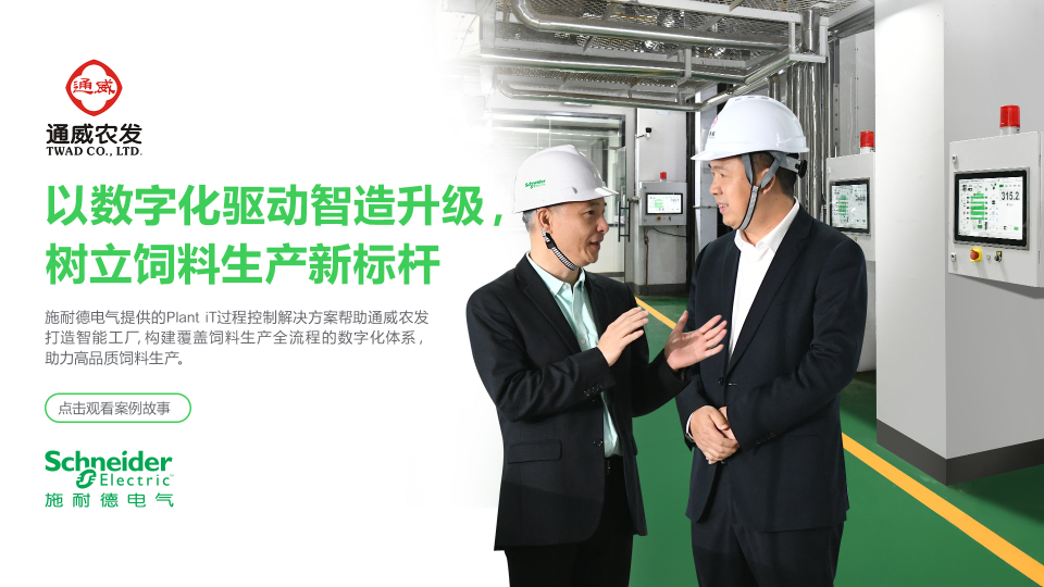 目前該套解決方案已經在通威農發江蘇生產基地和重慶生產基地落地實施,未來將進一步向其國內外數十家工廠進行復制推廣。隨著復制效應的持續釋放,施耐德電氣正攜手通威農發,引領中國特種飼料行業步入更加智能、高效、可持續的生產新模式。