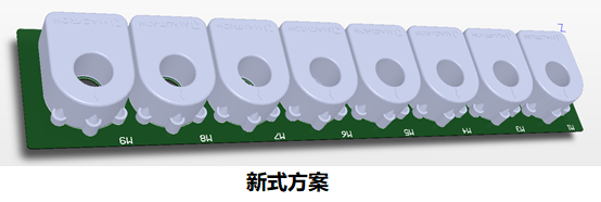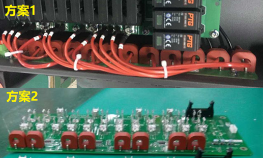 講到生產(chǎn)效率,就不得不提到分布式逆變器的組串電流檢測(cè)。它和匯流箱起著類似的作用。作為逆變器的一部分,它的設(shè)計(jì)會(huì)更加緊密。傳統(tǒng)的立式安裝會(huì)遇到PCB板占板面積較大,穿線不方便的情況。組串線需要先穿過(guò)傳感器的孔再插入逆變器內(nèi)殼的MC4端子接線頭。兩次穿線會(huì)給工人帶來(lái)生產(chǎn)效率上的問(wèn)題。
