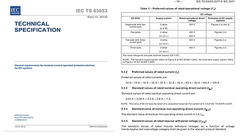 針對采用電源端接地的TT、TN接地形式的直流配電系統的接地故障防護,使用剩余電流保護依然是最好的方式,對此IEC發布了 IEC TS 63053:2017《General requirements for residual current protective devices for DC systems》。該直流剩余電流保護裝置(DC-RCD)