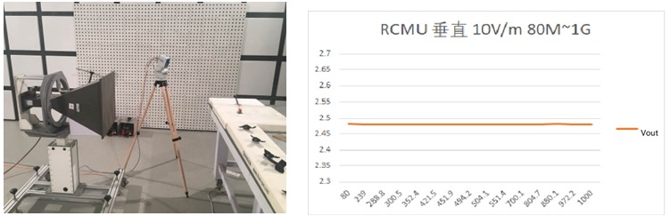 通過對(duì)MAGTRON公司的RCMU系列漏電電流傳感器進(jìn)行測(cè)試,其實(shí)際電磁輻射抗擾度在垂直10V/m場(chǎng)強(qiáng),80M~1GHz輻射頻率中輸出依然能夠保持穩(wěn)定,不會(huì)影響它的檢測(cè)。