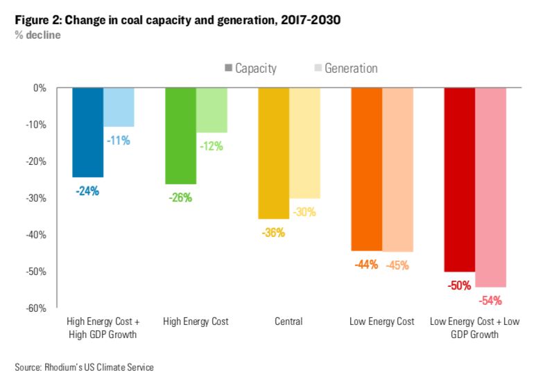 新預(yù)測基于其在6月份發(fā)布的2018年采購庫存報告中收集的數(shù)據(jù),使用一系列方案來預(yù)測煤炭產(chǎn)能的退役和煤炭總發(fā)電量的減少。