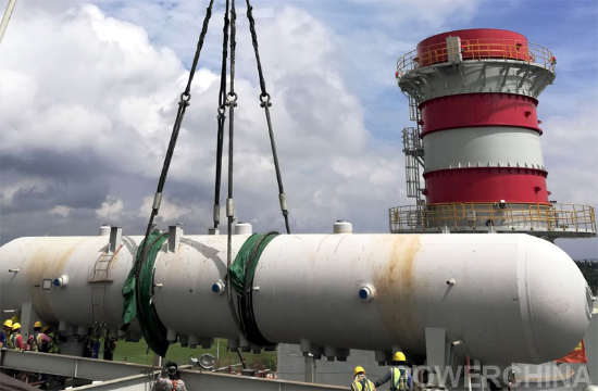 錫拉杰甘杰項(xiàng)目鍋爐為臥式三壓余熱鍋爐,汽包分為高壓、中壓及低壓三個(gè)汽包,總重約207.6t,采用600t履帶吊單獨(dú)吊裝就位。其中,高壓汽包長(zhǎng)17408mm,外徑2360mm,單重為134.8t。為順利完成吊裝工作,項(xiàng)目部超前策劃、科學(xué)組織,從汽包的基礎(chǔ)劃線、汽包運(yùn)輸、吊裝就位等方面嚴(yán)格把控,首次成功采用內(nèi)河駁船運(yùn)輸汽包等大件物資設(shè)備,并按照高、中、低的順序開展;整個(gè)吊裝過程安全、順利、高效,用時(shí)三天順利完成汽包吊裝工作,得到業(yè)主的高度評(píng)價(jià)。