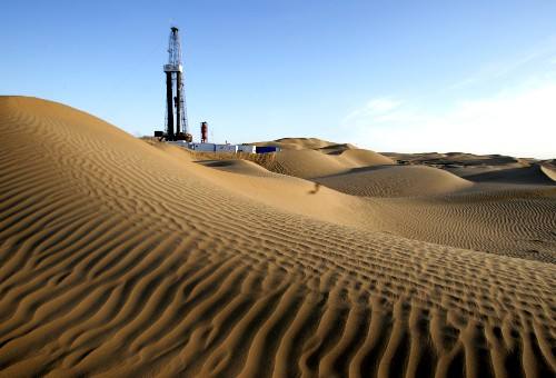 塔里木盆地沙漠腹地里的天然氣鉆井 資料圖