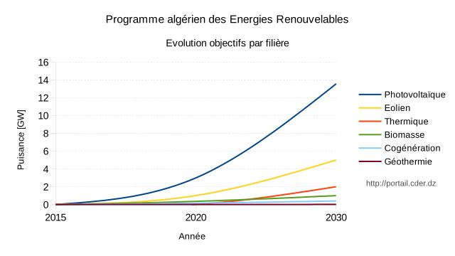 由于政府于2011年2月采用了2011 - 2030年可再生能源發展計劃,可再生能源是阿爾及利亞能源和經濟政策的核心。