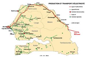 塞內加爾的總裝機容量為638兆瓦(2010年預計),其中80%與國家電網相連。SENELEC擁有的發電站占總產能的近60%,其余為私人,GTI-Dakar或ESKOM-Manantali。