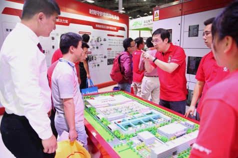 德力西電氣工作人員向觀眾用沙盤展示智能配電系統(tǒng)