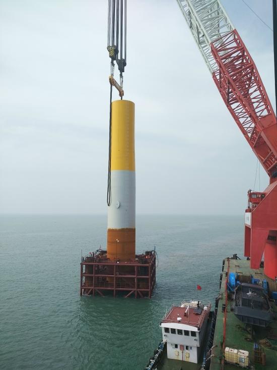 我國最大單機容量風電機組基礎超大直徑單樁順利沉樁