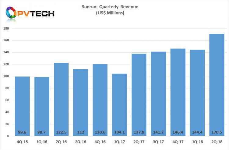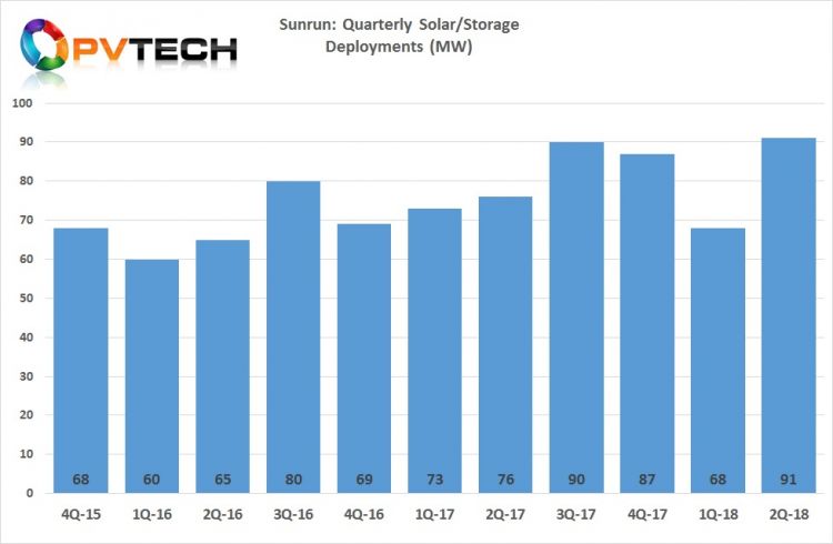 雖然季節(jié)性在部署和收入確認(rèn)方面發(fā)揮了作用,但Sunrun的太陽(yáng)能屋頂部署已從2016年第二季度的65MW增加到2018年第二季度的91MW。