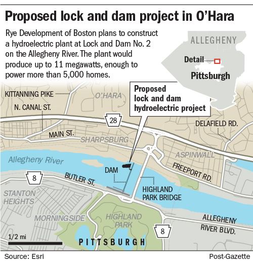波士頓Rye Development公司的官員表示,他們正在為高地公園大橋下方的阿勒格尼河上的洛克斯和2號大壩的水力發電廠設計計劃。