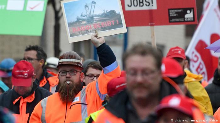 隨著煤炭委員會召開計劃逐步淘汰燃煤發(fā)電,大約2萬名礦工在Bergheim游行,要求保護(hù)他們的工作,其中也包括環(huán)保者。