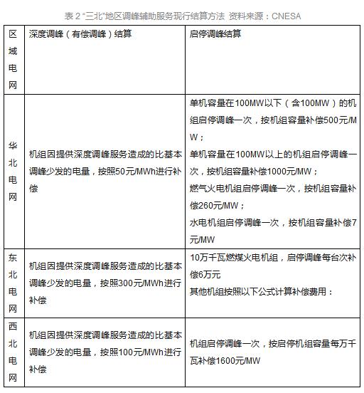 《關(guān)于促進(jìn)電儲(chǔ)能參與“三北”地區(qū)電力輔助服務(wù)補(bǔ)償(市場(chǎng))機(jī)制試點(diǎn)工作的通知》已經(jīng)允許儲(chǔ)能參與電力輔助服務(wù),但相關(guān)的結(jié)算機(jī)制并未確定。在現(xiàn)行主要以火電機(jī)組參與的電力輔助服務(wù)市場(chǎng)中,“三北”地區(qū)調(diào)峰的結(jié)算方式如下: