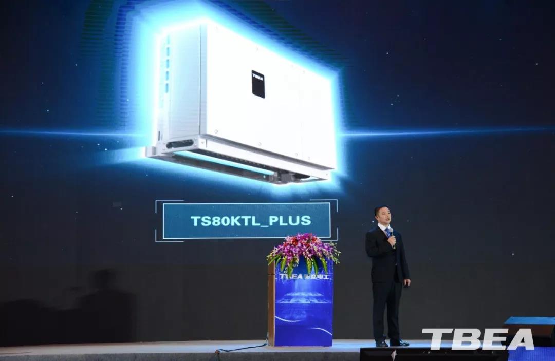 特變電工西安電氣科技有限公司總經理助理劉寶輝 介紹了此次會上該公司隆重發布的全新一代組串級逆變器TS75KTL_BF以及TS80KTL_PLUS,MPPT滲透率均達100%,全面提升光伏電站發電量。其中TS75KTL_BF組串級逆變器“搭檔”雙面組件,具有30%輸出過載能力;TS80KTL_PLUS組串級逆變器“賦能”高效組件,復雜地況提升發電量4%以上。