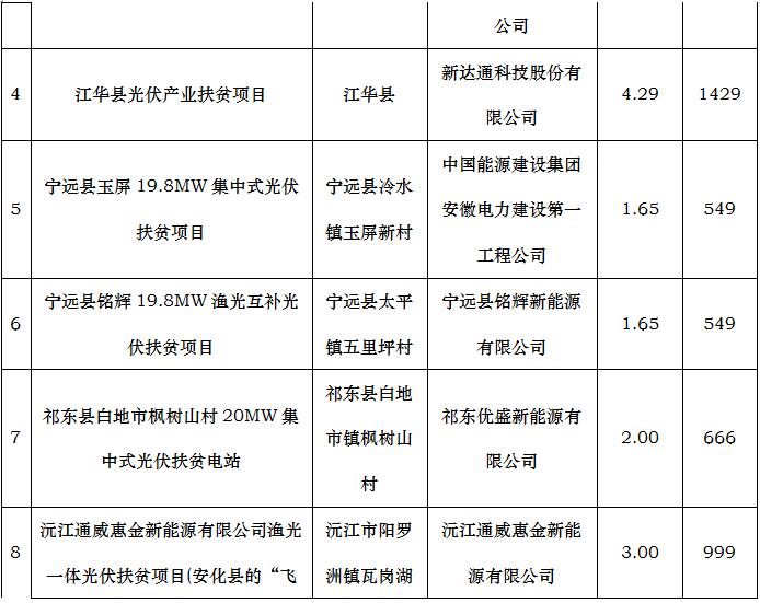 根據《國家能源局關于可再生能源發展“十三五”規劃實施的指導意見》(國能發新能[2017]31號)和《國家能源局、國務院扶貧辦關于“十三五”光伏扶貧計劃編制有關事項的通知》(國能發新能[2017]39號)精神,省發改委、省扶貧辦、省財政廳聯合下發了《關于開展2017年集中式光伏扶貧項目申報工作的通知》(湘發改能源〔2017〕1133號),組織市州按照申報條件和篩選原則優選投資企業和項目上報。近期,省發改委和省扶貧辦共同對項目進行了審核篩選,按照相關要求和原則篩選確定了2017年集中式光伏扶貧電站項目共20個、安排裝機規模49.99萬千瓦,受益無勞動能力貧困戶16646戶。根據有關規定,現將項目名單予以公示。