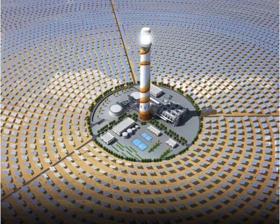 光熱電站位于光伏電站南側(cè),采用塔式熔鹽技術(shù),儲(chǔ)熱時(shí)長(zhǎng)為12小時(shí)。