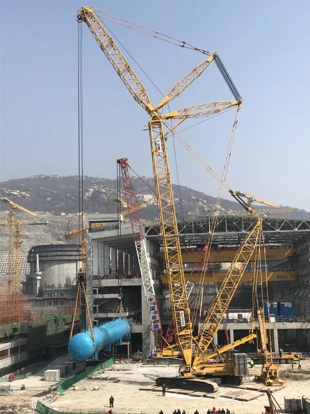 2018年3月10日15:18時,田灣5號機組除氧器引入常規(guī)島20.5m平臺,至此,全廠最長件——除氧器整體吊裝引入順利完成。這是工程公司在核電工程建設中首次整體吊裝除氧器。