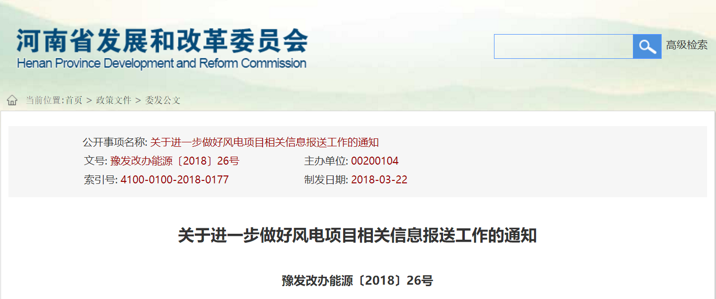 河南省發改委發布《關于2017年河南省風電項目建設情況的通報》