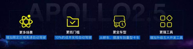 2018年4月19日——在百度宣布推出Apollo計劃整整一周年后,這家互聯(lián)網(wǎng)巨頭于北京競園藝術(shù)中心舉行了“Apollo Meetup——Apollo2.5 開放技術(shù)發(fā)布會”,正式對外發(fā)布Apollo 2.5版本。與之前的版本相比,本次 Apollo2.5在更多場景、更低門檻、更全車型、更強(qiáng)工具四個方面進(jìn)行了拓展,可滿足開發(fā)者的更多需要。