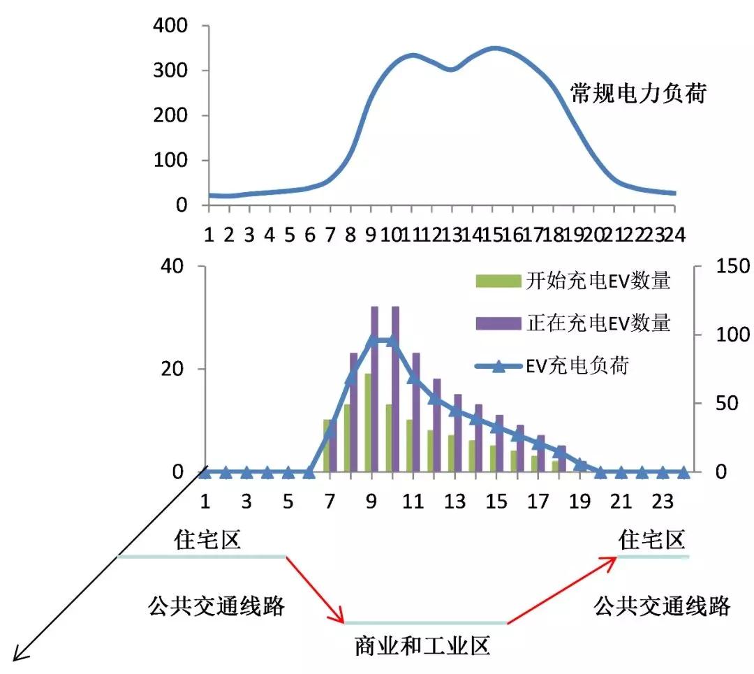 光伏發電和電動汽車的融合是未來技術發展的一大趨勢。童亦斌認為分布式光伏發電和電動汽車的普及是在未來配網面臨的重大挑戰,從北京交通大學實驗監測數據的分析結果不難發現,電動汽車充電負荷高峰非常集中,在早上上班高峰和中午上班的高峰。電動汽車無序充電,充電高峰與用電高峰疊加,造成“峰上加峰”,嚴重影響電能質量和供電可靠性,增大線路網損。