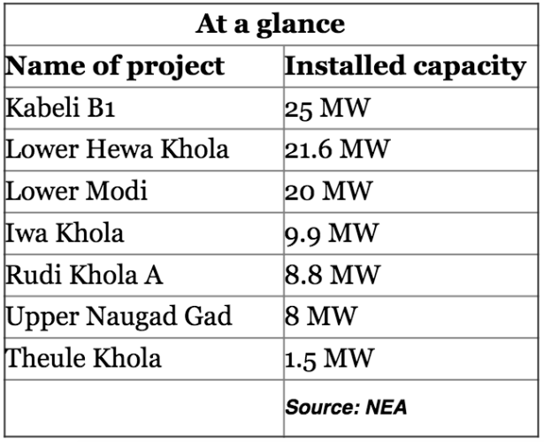 在接近完成的七個項(xiàng)目中,25兆瓦Kabeli B1,21.6兆瓦下赫瓦霍拉和20兆瓦下莫迪是三大項(xiàng)目。