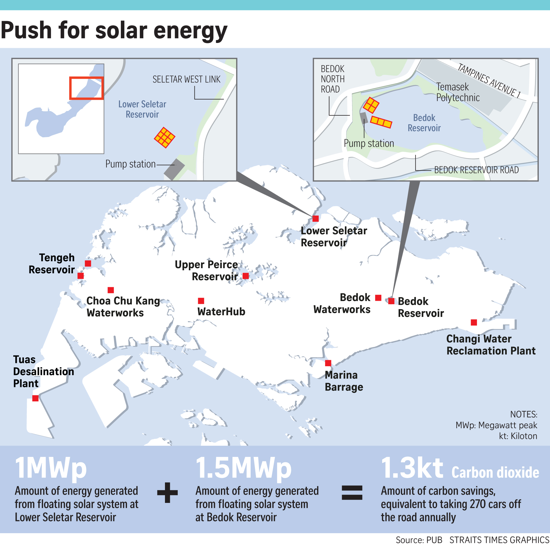 Tengeh和Upper Peirce水庫正在進行太陽能系統工程研究,現在國家水務局PUB正在考慮將這些水庫添加到另外兩個水庫,以更環保的方式為其耗能高的水處理過程提供動力。