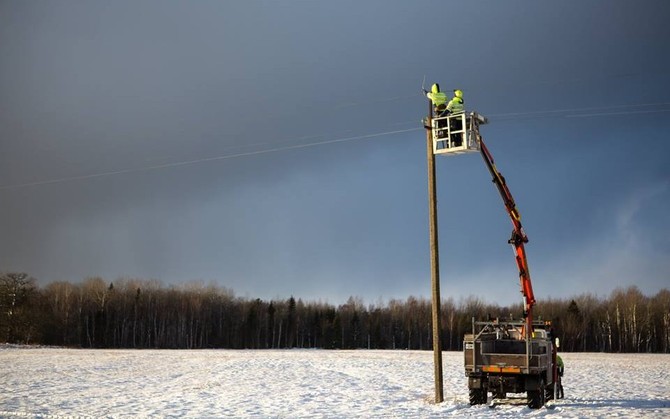 Elektrilevi在Saaremaa的Kuressaare附近修復(fù)電力線。 來(lái)源:(Valmar Voolaid)